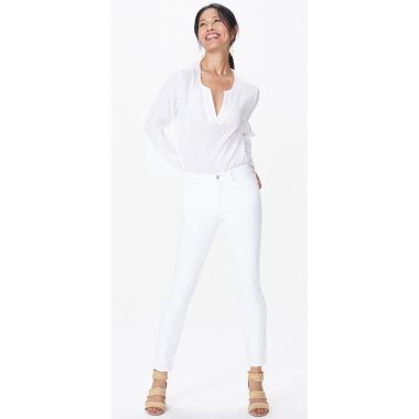 These white ankle jeans look fantastic paired with neutral colours. They feature a higher waist, five-pocket styling, zip-fly and button fastening. All NYDJ jeans feature our exclusive Lift Tuck® Technology that flattens in the front and shapes your curves for a beautiful silhouette.