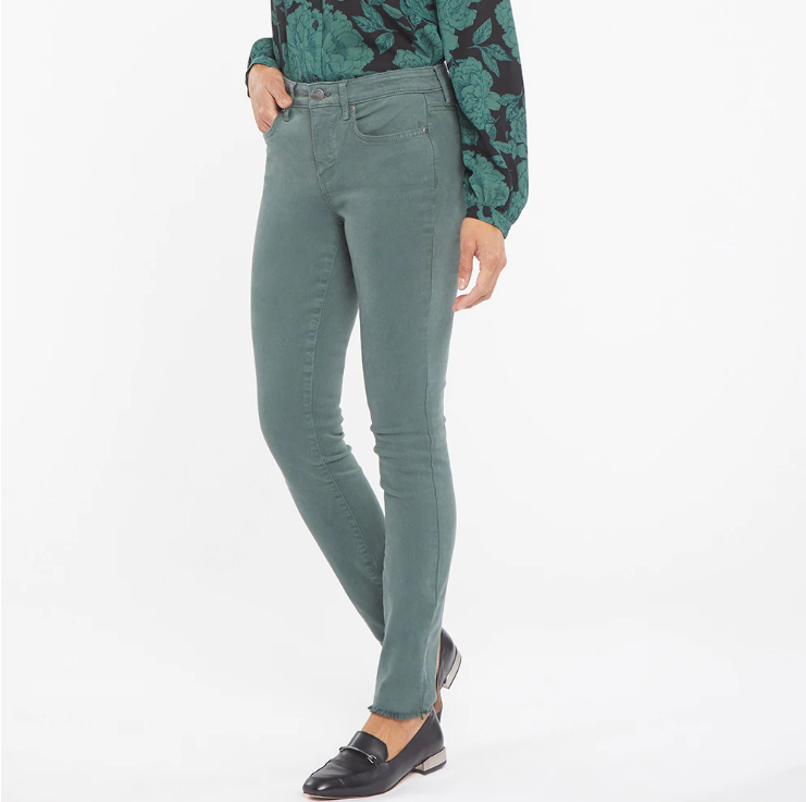 The Ami Skinny Jeans with Frayed Hems by NYDJ have a fresh look with a little edge. These street-ready jeans make an instant impression with their trending detail, and they're so comfortable and flattering you'll want to wear them all the time. Our unique Lift Tuck® Technology helps flatten in the front by using a proprietary slimming panel with a patented criss-cross design. Features classic five-pocket styling, zip fly and button closure.