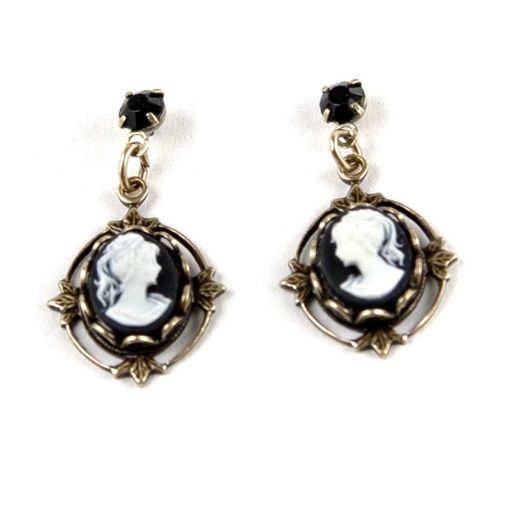 Beautifully designed ornate earrings in antique gold finish with traditional Cameo detail