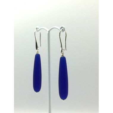 Czech Glass 30mm drop beads with a matte finish. Lovely cobalt blue glass & nickel free ear hooks. Comes in other colours. Approximately 45mm long from top of hook to bottom of beads. Limited edition.