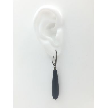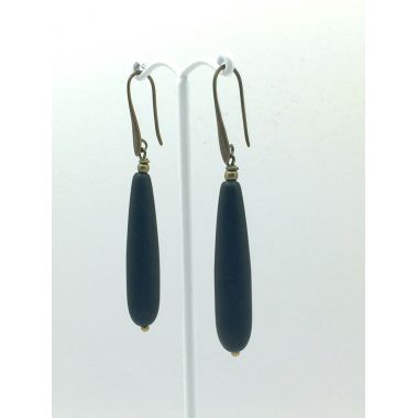 Czech Glass 30mm drop beads with a matte finish. Lovely opaque black glass with antique finished brass. Comes in other colours. Approximately 45mm long from top of hook to bottom of beads. Limited edition.