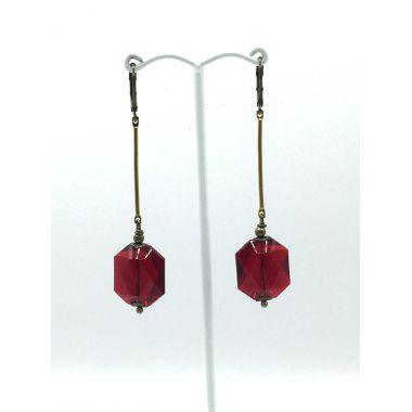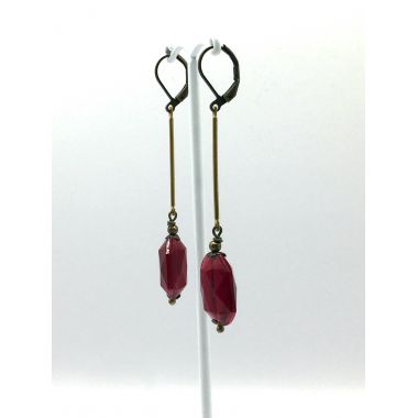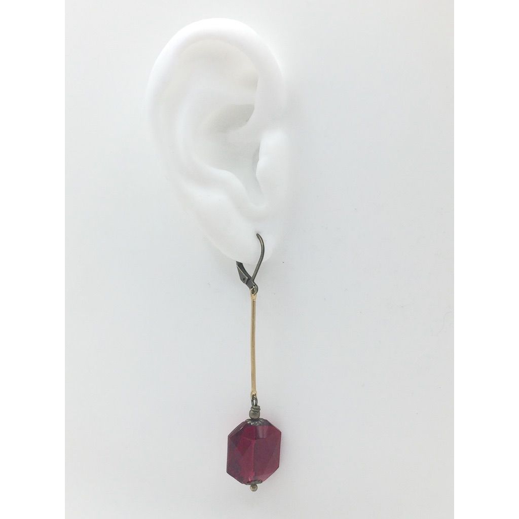 Vintage, dark red, faceted Lucite Beads. These are hung on a knife edged brass bar. Light to wear and quite sparkly. The lever backed ear hooks are nickel free and guarantee they can't fall out when on the dance floor. 7 cm from top of hook to bottom of beads.