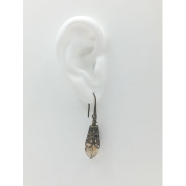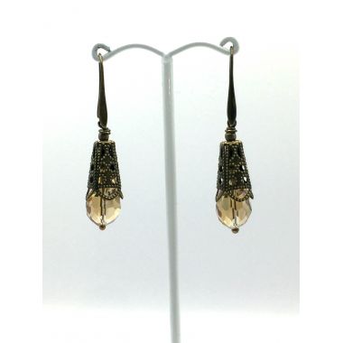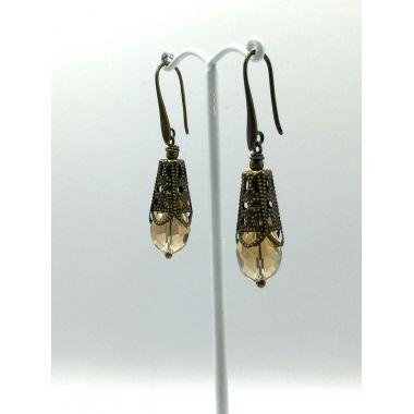 Gorgeous earrings! Topaz coloured faceted glass drop bead earrings. They have an antique look filigree brass bead cap and measure 4.5 cm from the top of the ear hook to the base of the pretty sparkly beads.