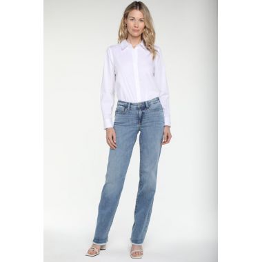 Let's get straight to the point. The easy, flattering fit of NYDJ's Relaxed Straight Jeans with Mid Rise and Frayed Hems pairs well with everything. The classic and comfortable medium rise, combined with a more relaxed fit through the hips and thighs, makes this straight-leg jean the perfect casual-chic option for your wardrobe. Our Lift Tuck® Technology uses a proprietary slimming panel with a patented criss-cross design to shape and support your curves for an always-sleek silhouette. Features five-pocket styling, a zip fly with button closure and cutoff frayed hems.