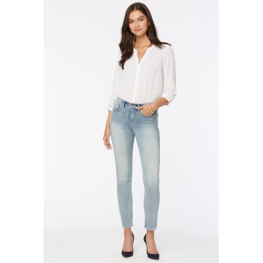 Classic jeans with a twist. NYDJ's Alina Skinny Ankle Jeans are the jeans of your dreams with some ankle-skimming style. Our exclusive Lift Tuck® Technology flattens your front, using a proprietary slimming panel with a patented criss-cross design, for an ultra-flattering fit that completes any outfit. Dress them up or dress them down - the slim, ankle-length fit adds an easy edge to your look. Features classic five-pocket styling, zip fly and button closure.