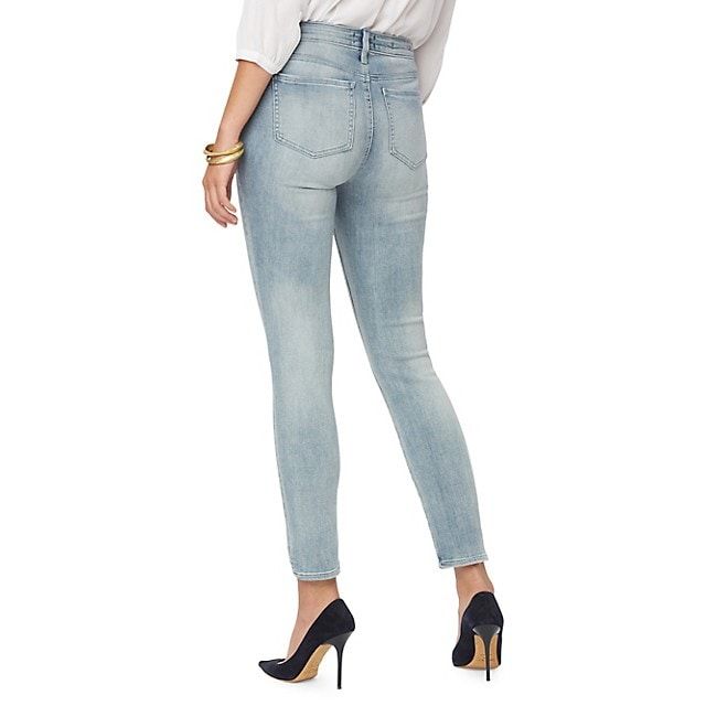 Classic jeans with a twist. NYDJ's Alina Skinny Ankle Jeans are the jeans of your dreams with some ankle-skimming style. Our exclusive Lift Tuck® Technology flattens your front, using a proprietary slimming panel with a patented criss-cross design, for an ultra-flattering fit that completes any outfit. Dress them up or dress them down - the slim, ankle-length fit adds an easy edge to your look. Features classic five-pocket styling, zip fly and button closure.