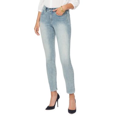 Classic jeans with a twist. NYDJ's Alina Skinny Ankle Jeans are the jeans of your dreams with some ankle-skimming style. Our exclusive Lift Tuck® Technology flattens your front, using a proprietary slimming panel with a patented criss-cross design, for an ultra-flattering fit that completes any outfit. Dress them up or dress them down - the slim, ankle-length fit adds an easy edge to your look. Features classic five-pocket styling, zip fly and button closure.