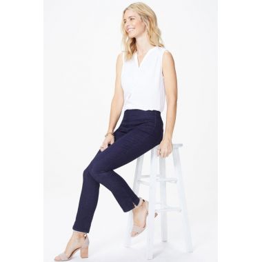 NYDJ's Alina Pull On Ankle is the perfect work-to-weekend pant. Crafted from luxe premium denim, this piece has excellent stretch, exceptional recovery, and a super soft touch that gets even softer after every wash. Thanks to our revolutionary Lift Tuck® Technology, these jeans slim from within to make you look and feel one whole size smaller. Features elastic pull-on waist and functional back pockets.