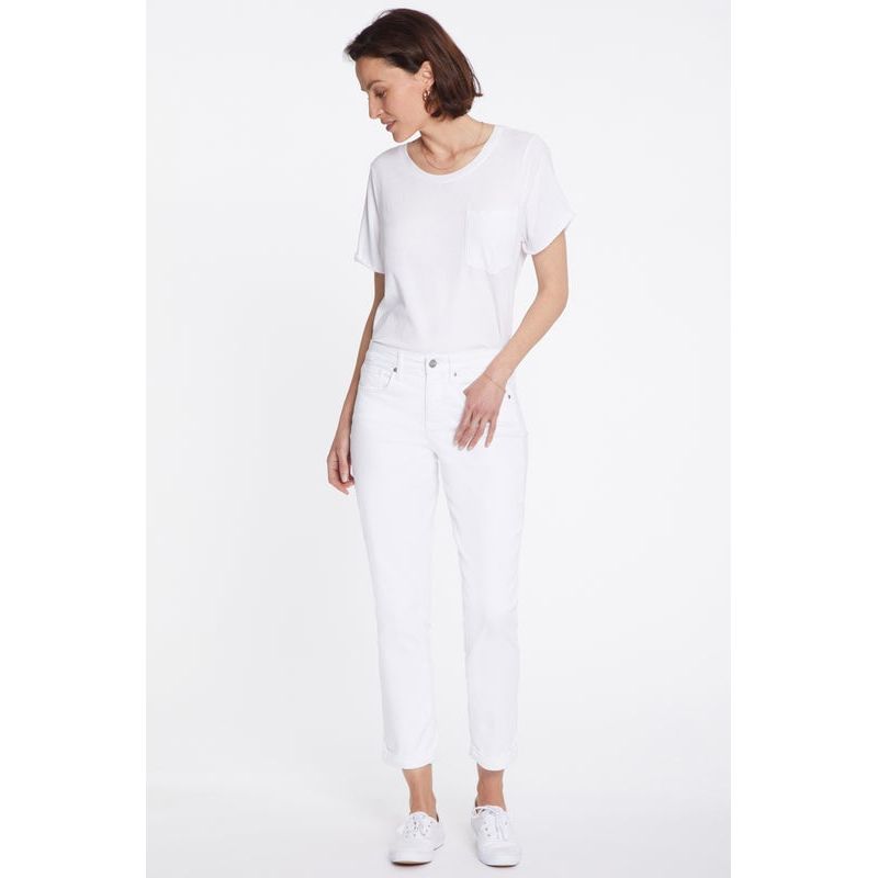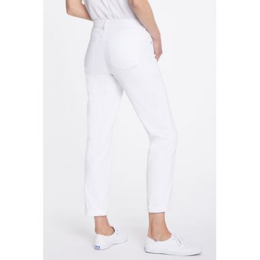 That perfect relaxed denim fit you've been looking for? It's here, in the Margot Girlfriend Jeans by NYDJ. Their just-slouchy-enough cut is slimmer (and more slimming) than a boyfriend jean while maintaining a laid-back looseness through the leg. Our signature Lift Tuck® Technology makes the fit extra flattering by using a patented criss-cross design inside to shape and support your curves. Features a zip fly with button closure, classic five-pocket styling and adjustable rolled cuffs.