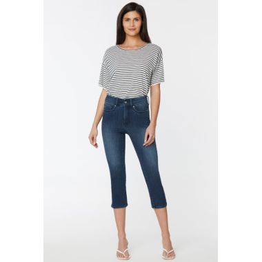 Meet the capri-length version of our best-selling skinny fit, with a trending higher waist that enhances curves. NYDJ's Ami Skinny Capri Jeans in Sure Stretch® Denim with High Rise offer stretch and comfort that's second to none while giving you sculpted legs, a tucked tummy and a little lift in the back. Sure Stretch® denim technology makes these jeans incredibly soft and stretchy while keeping them in perfect condition, thanks to a high-performance fabric that helps them bounce back and retain their shape. Our unique Lift Tuck® Technology smooths out your front by using a proprietary slimming panel with a patented criss-cross design, and a wide, sleek waistband keeps the fit even more flattering. Features five-pocket styling, zip fly and button closure.