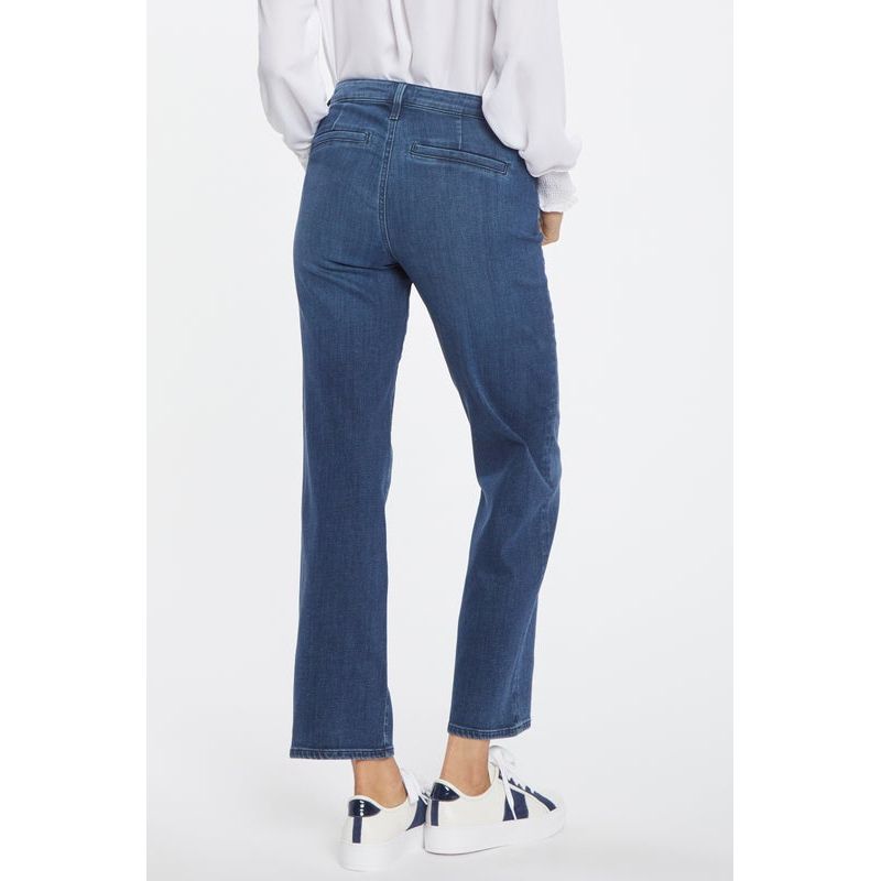 DESCRIPTIONThe easy straight-leg silhouette of NYDJ's Relaxed Piper Ankle Jeans is so flattering, especially combined with our signature no-gap higher rise that hits at the natural waist. It's also laid back and fun—just the jean you want to wear with tanks and tees on casual days. This pair features oversized front pockets that give it a utility-chic look. Lift Tuck® Technology helps create a smoother fit in front using our proprietary slimming panel with a patented criss-cross design. Finished with five-pocket styling with back welt pockets, back darts and a zip fly with button closure.