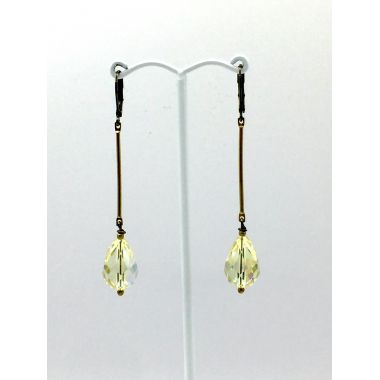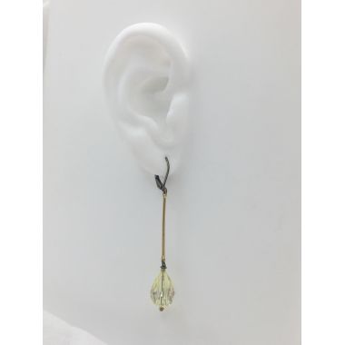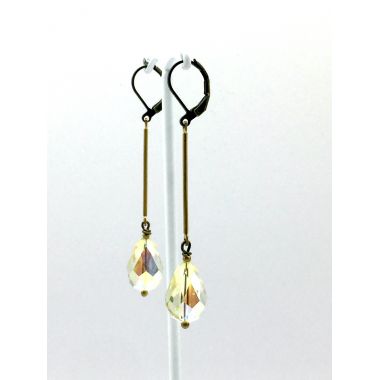 Very sparkly, vintage crystal drop beads on a brass knife edged bar drop.These beads have a surface AB rainbow finish & are 6.5 cm long from the top of the nickel free, lever backed ear hooks to the base of the beads.