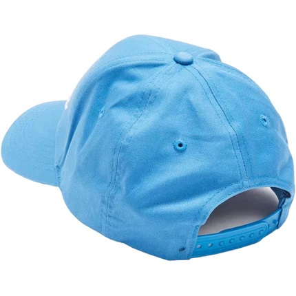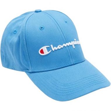 Champion Script Unisex cap. Embroidery script logo on front with adjustable plastic back snap closure. Color - Sea Drifter