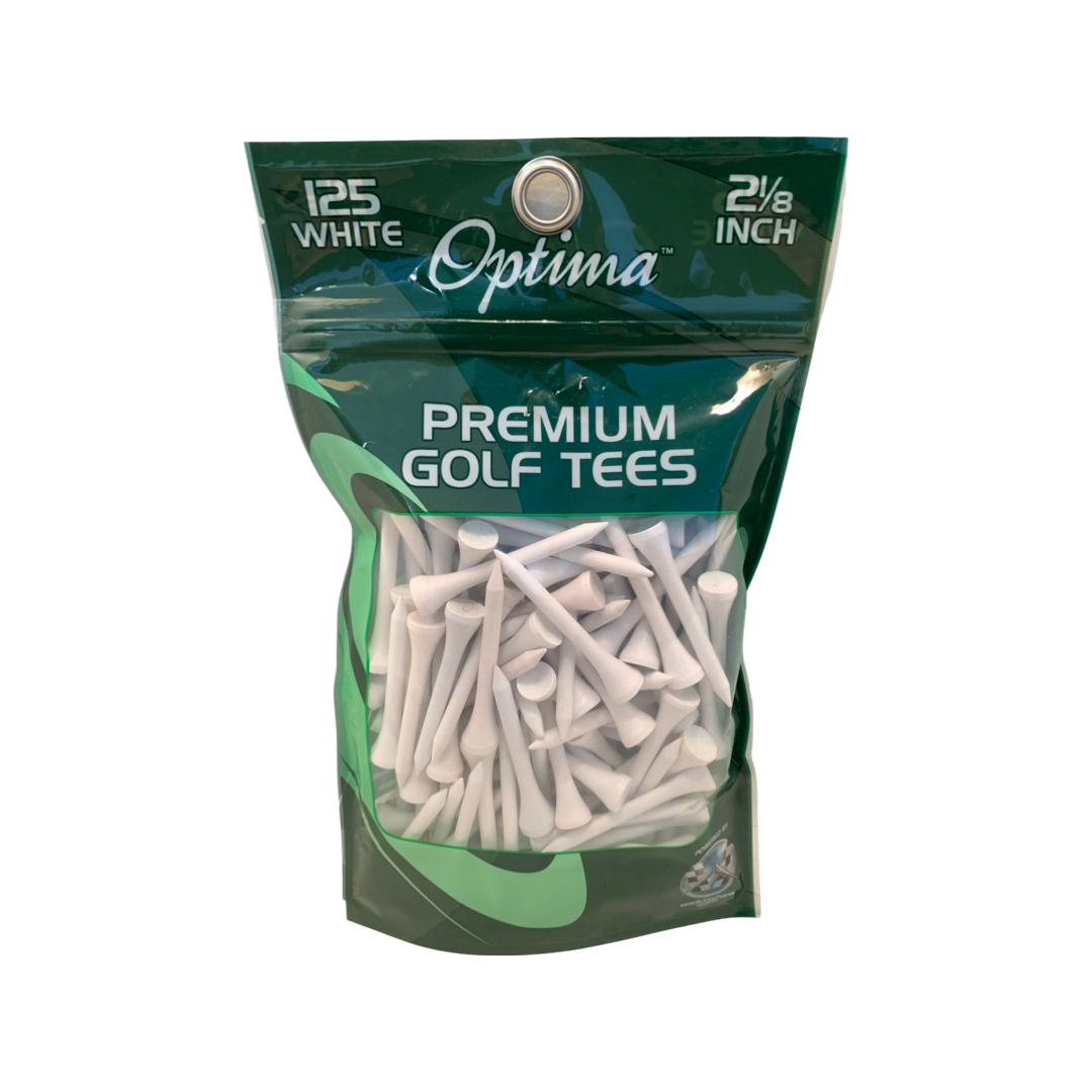 Optima premium golf tees 2 1/8 inch made from premium hardwood. Packet of 125.